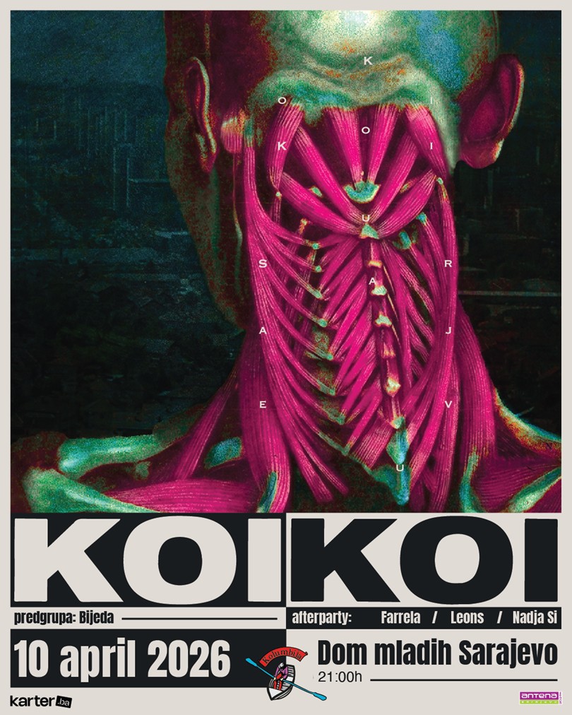 Jedan od najvažnijih predstavnika savremene regionalne alternativne scene, beogradski bend KoiKoi, nastupit će u Sarajevu 10.4.2026., u 21:00 sat, u amfiteatru Doma mladih Skenderija, u organizaciji produkcije Kolumbija. Nakon eksplozivnih koncerata u Banjoj Luci, Tuzli i Mostaru, KoiKoi će sarajevskoj publici 10. aprila predstaviti svoj novi album „O sreći u snovima“, objavljen 2025. godine, koji mnogi smatraju najboljim rock albumom u regiji u protekloj godini.