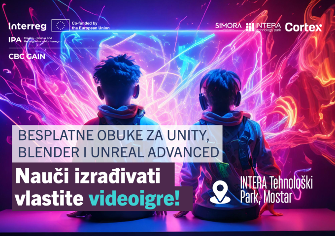 U okviru projekta CBC GAIN – Investing in the Future: Gaming for New Generations, koji se realizira uz potporu Europske unije, u INTERA Tehnološkom Parku pokrećemo novi ciklus obuka: Unity (početna razina), Blender (početna razina) i Unreal Engine (napredna razina).