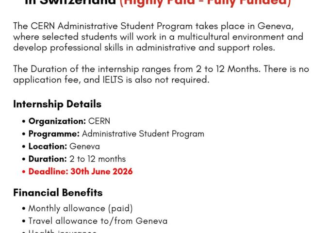 CERN Administrative Student Program 2026 in Switzerland (Fully Funded)