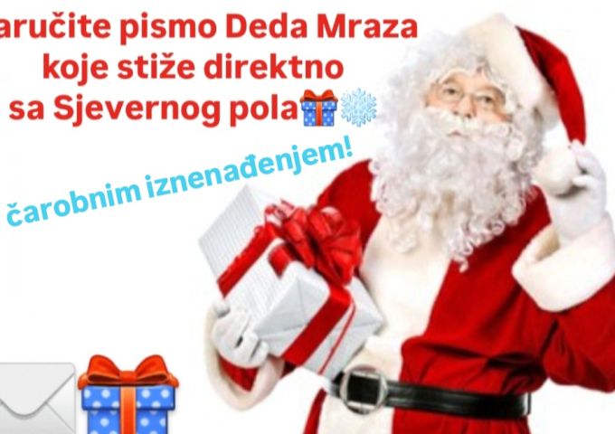 Drage mame i tetke, strine, tate, amidže, daidže, komšinice…ovo je vaša prilika da za svoje najdraže članove porodice i komšiluka (najmlađe) naručite specijalan poklon, jer Djeda Mrazova pomoćnica, Teta Čarobnica i Djeda Mraz za Vas imaju ČAROBNU prazničnu ponudu: PISMO SA SJEVERNOG POLA DIREKTNO IZ DJEDA MRAZOVE ČAROBNE RADIONICE.
