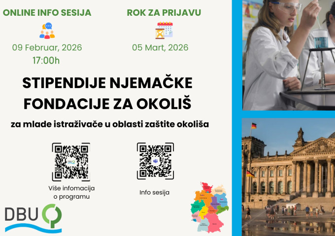 Zamisli da tvoje ideje ne ostanu samo u ladici ili na papiru, već postanu dio stvarnih rješenja za zaštitu okoliša - i to u srcu Evrope. Upravo takvu priliku nudi CEE Fellowship program Njemačke fondacije za okoliš (DBU): istraživački boravak u Njemačkoj koji povezuje znanje, inovacije i međunarodnu saradnju.
