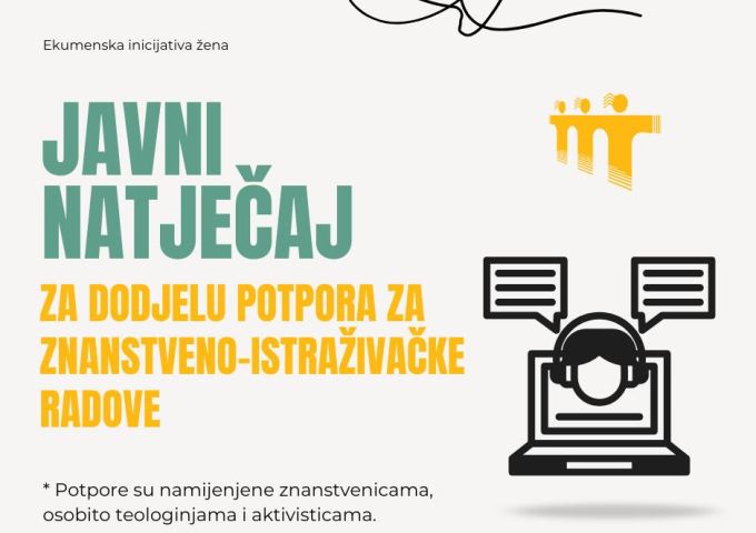 S radošću objavljujemo 6. Javni natječaj za dodjelu potpora za znanstveno-istraživačke radove (EFP 2026). Potpore su namijenjene znanstvenicama, osobito teologinjama i aktivisticama, iz Hrvatske, Bosne i Hercegovine, Crne Gore, sa Kosova, iz Sjeverne Makedonije i iz Srbije za izradu feminističkih znanstveno-istraživačkih radova do 8.000 riječi na teme od strateškog interesa EIŽ-a. Detaljne informacije možete pronaći na hrvatskom or in English.