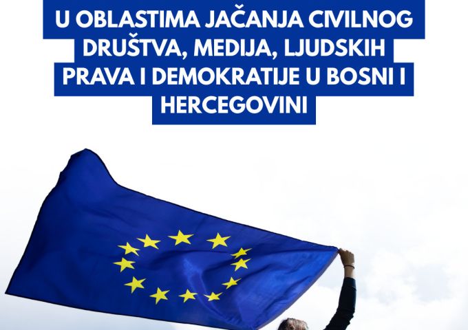 Delegacija Evropske unije u Bosni i Hercegovini objavila je javni poziv u vrijednosti od 5,7 miliona eura, kao dio ukupnog paketa vrijednog 6,9 miliona eura za jačanje participativne demokratije, zaštitu ljudskih prava i unapređenje procesa evropskih integracija u Bosni i Hercegovini kroz snažniju ulogu organizacija civilnog društva i nezavisnih medija.