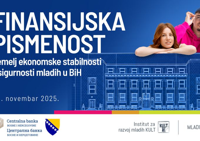 Da li te zanima kako donijeti pametne finansijske odluke, bolje upravljati novcem i planirati svoju finansijsku budućnost? Centralna banka Bosne i Hercegovine i Institut za razvoj mladih KULT pozivaju te da učestvuješ na događaju pod nazivom „Finansijska pismenost – temelj ekonomske stabilnosti i sigurnosti mladih u BiH“, koji će se održati 13. novembra 2025. godine, s početkom u 9:00 sati, u prostorijama Centralne banke BiH (Mehmeda Spahe 3, Sarajevo). Finansijska (ne)pismenost predstavlja globalni problem koji posebno pogađa mlade, bilo da su još u obrazovnom sistemu ili započinju samostalan život. Nedostatak znanja i resursa otežava im donošenje informisanih finansijskih odluka i planiranje budućnosti. Istraživanja u Bosni i Hercegovini potvrđuju slične trendove, što naglašava potrebu za sistemskim pristupom finansijskom obrazovanju i jačanjem saradnje između institucija, obrazovnih ustanova i organizacija civilnog društva. Na događaju ćemo