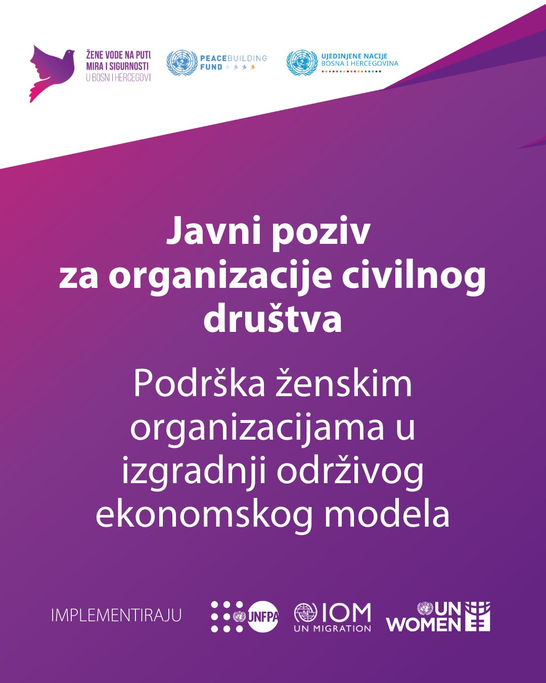 Produžen je rok za prijave na javni poziv objavljen u okviru United Nations Peacebuilding inicijative #ŽeneVodeBiH.