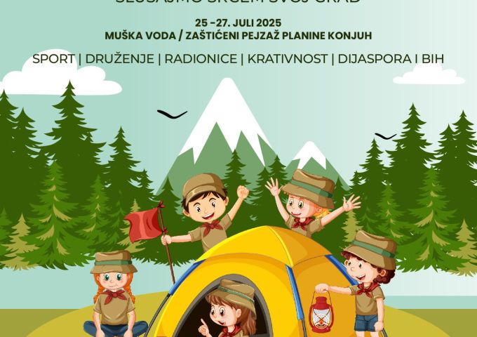 Sa velikim zadovoljstvom najavljujemo još jedno izdanje dječijeg kampa „Slušajmo srcem svoj grad 2025“, koji će se održati na čistom zraku i u prirodnom okruženju centra Muška voda kod Kladnja, u periodu od 25. do 27. jula 2025. godine. Ovaj trodnevni kamp okuplja djecu iz različitih dijelova Bosne i Hercegovine, kao i iz dijaspore, s ciljem jačanja međusobne povezanosti, identiteta i osjećaja pripadnosti svom gradu, zavičaju i zemlji porijekla.