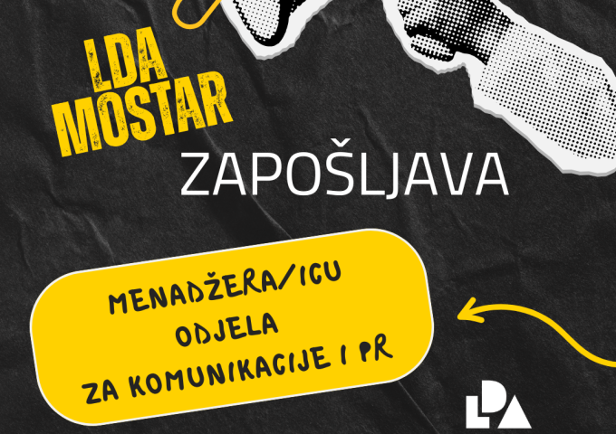 Agencija lokalne demokratije Mostar (LDA Mostar) raspisuje konkurs za radnu poziciju Menadžer/ica odjela za komunikacije i odnose s javnošću.