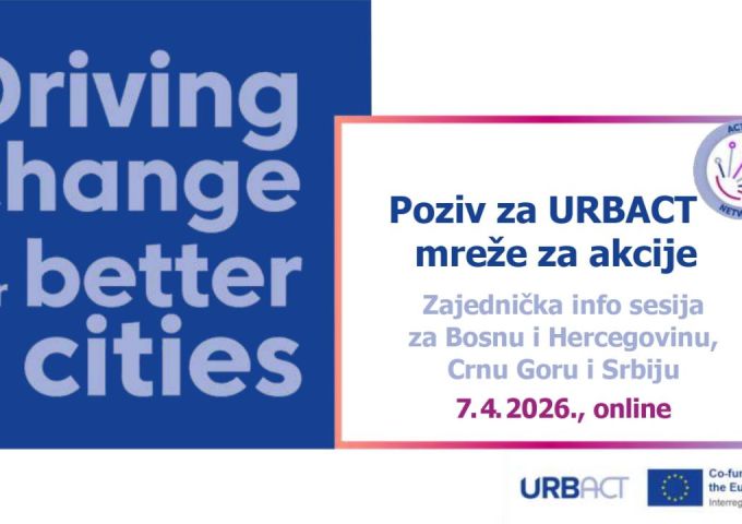 7. aprila 2026. godine, uz podršku Zajedničkog sekretarijata URBACT-a, uspješno je održana zajednička online info sesija za Bosnu i Hercegovinu, Crnu Goru i Srbiju povodom aktuelnog poziva za URBACT mreže za akcije (Action Networks). Ovaj događaj je okupio oko 80 učesnika iz navedenih zemalja, potvrđujući kontinuiranu zainteresovanost ovog dijela Evrope za učešće u URBACT-u. Kroz strukturiran program i interaktivnu diskusiju, učesnici su imali priliku da se detaljnije upoznaju sa mogućnostima koje pruža ovaj program, kao i sa konkretnim koracima za uključivanje u novi tip URBACT mreža.