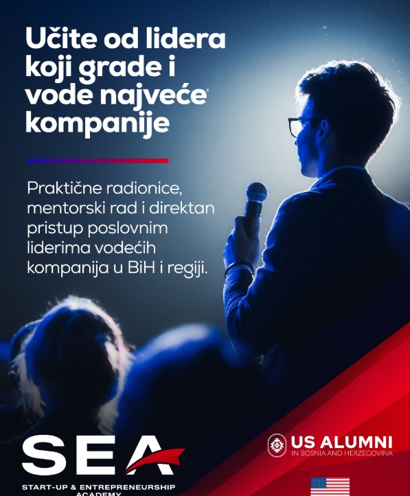 Prepoznajući da snažna mala i srednja preduzeća direktno doprinose stabilnijoj ekonomiji, većem zapošljavanju i zdravijem poslovnom okruženju u Bosni i Hercegovini, Udruženje alumnija SAD-a u BiH (USAABH), uz podršku AEIF Fonda Ministarstva vanjskih poslova Sjedinjenih Američkih Država, pokreće jedinstven SEA program - Start-up & Entrepreneurship Academy. Praktične radionice i mentorstvo osmišljeni su da pomognu poduzetnicima da stabiliziraju poslovanje, brže rastu i povećaju konkurentnost, uz istovremeni doprinos razvoju lokalne i nacionalne ekonomije.