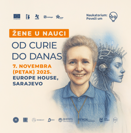 Pridružite nam se na događaju „Žene u nauci – od Marie Skłodowske-Curie do danas“, gdje slavimo znatiželju, nauku i inspiraciju žene koja je promijenila svijet – Marie Curie, rođene upravo 7. novembra 1867.