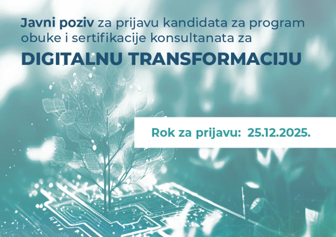 Privredna komora Republike Srpske, kroz aktivnosti Centra za digitalnu transformaciju, objavljuje Javni poziv za prijavu kandidata za program obuke i sertifikacije konsultanata za digitalnu transformaciju, koja se realizuje u okviru projekta „Digitalno održiva zelena tranzicija malih i srednjih preduzeća u RS – DiGreenSMEs“.