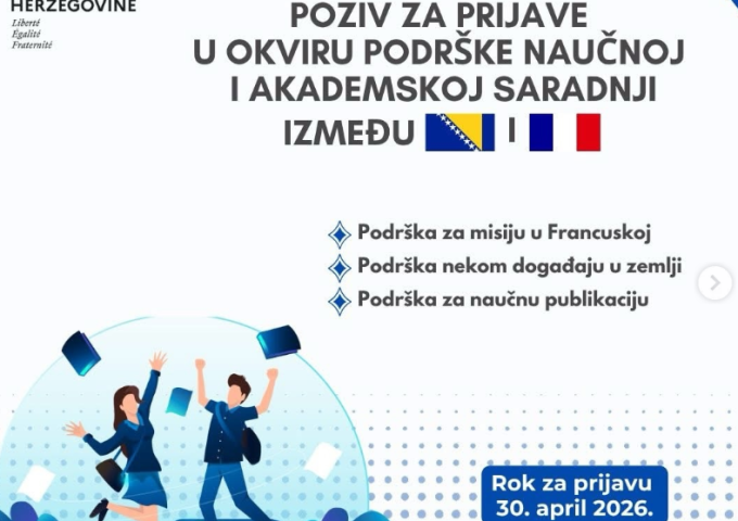 Poziv za prijave u okviru podrške naučnoj i akademskoj saradnji između BiH i Francuske