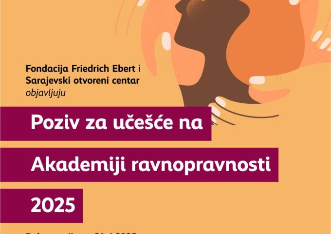 Otvoren je poziv za sedmu generaciju Akademije ravnopravnosti – platforme za političko liderstvo i udruženo djelovanje zastupnica_ka, liderki_a političkih stranaka i organizacija civilnog društva koju provodimo zajedno sa Friedrich-Ebert-Stiftung Bosna i Hercegovina