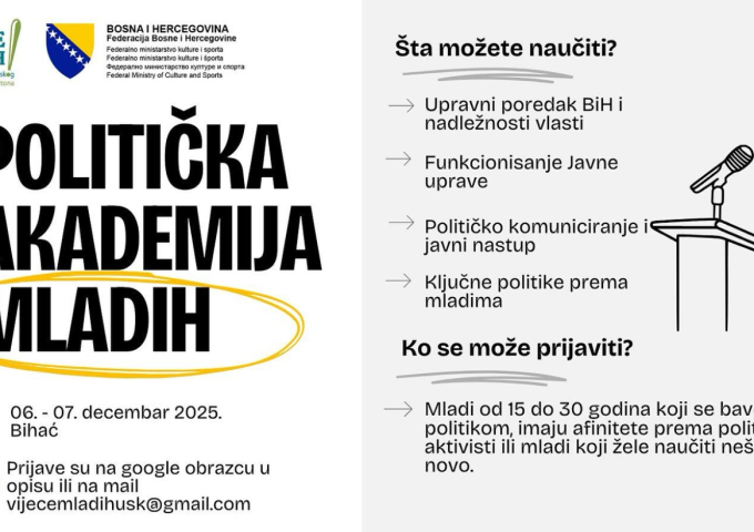 Politička akademija mladih održava se 06. i 07. decembra 2025.godine u Bihaću, hotel Safir.
