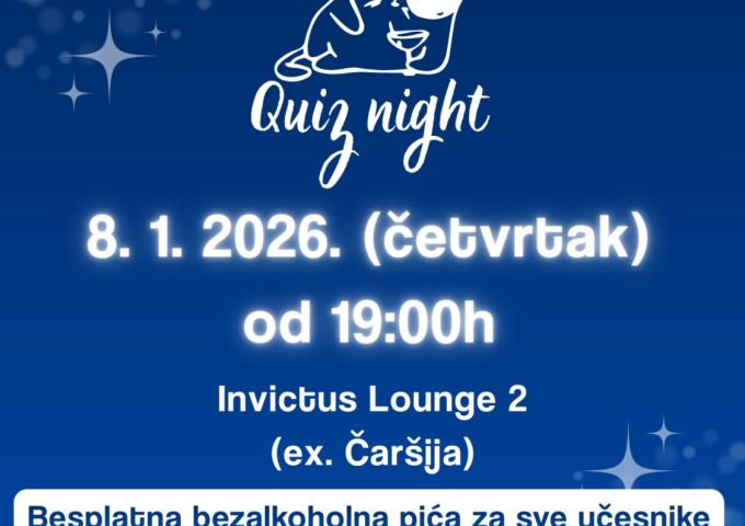 Kviz noć zamišljena je kao lagano druženje koje ne traži posebne pripreme. Dođeš s ekipom, sjedneš, igraš, uzivaš u atmosferi i pustiš da večer ide svojim tokom. Nema pritiska, nema formalnosti; samo dobra energija i mali takmičarski šmek.