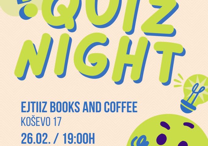 Ako voliš dobru atmosferu, malo takmičenja i pitanja iz raznih oblasti, ovo je večer za tebe. Okupi tim i dođite da se zabavimo!