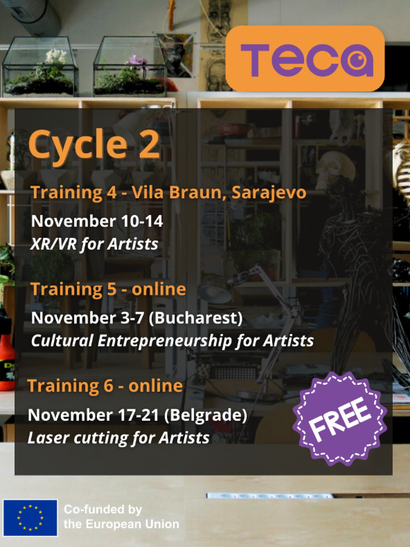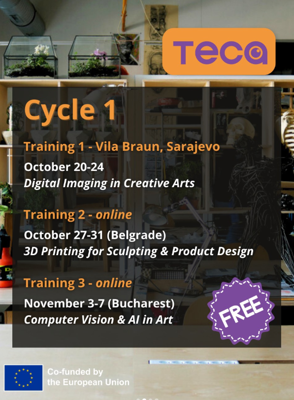 Through workshops, mentorship, and maker-based learning across Bosnia and Herzegovina, Serbia, and Romania, TECA connects emerging creators with technologies that redefine artistic practice — from AI and XR to IoT sensors and 3D fabrication.