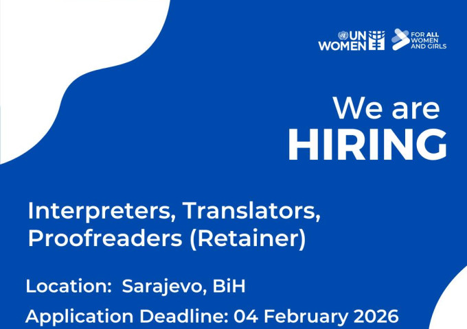 UN Women u Bosni i Hercegovini uspostavlja mrežu kvalifikovanih nacionalnih konsultanata/ica za usluge prevođenja i lekture (engleski-BHS / BHS-engleski), s fokusom na teme rodne ravnopravnosti i osnaživanja žena.