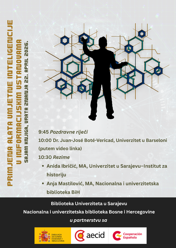 Prvi događaj kojim će biti otvorene aktivnosti u prostoru „Vrata znanja“ je predavanje dr. Juan-Josea Bote-Vericada sa Univerziteta u Barceloni, koji će putem video linka održati predavanje o temi: „Primjena alata umjetne inteligencije u informacijskim ustanovama“. Predavanje će biti održano 22. aprila s početkom u 10:00 sati, a organizuju ga Biblioteka Univerziteta u Sarajevu i Nacionalna i univerzitetska biblioteka Bosne i Hercegovine, u partnerstvu s Ambasadom Kraljevine Španije.