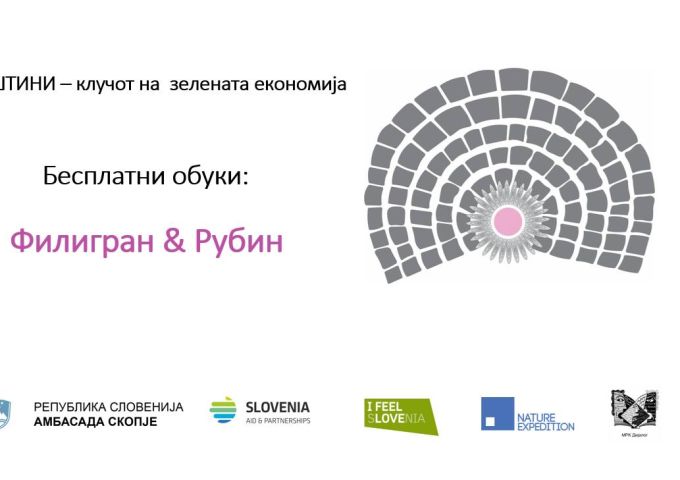 Во рамките на проектот „ВЕШТИНИ–Клучот на зелената економија„ поддржан од Амбасадата на Словенија и Министерството за надворешни и европски работи на Словенија, МРК Дијалог / Центар за истражување на природата и културата NATURE EXPEDITION, организираат БЕСПЛАТНА 10-ДНЕВНА ОБУКА ЗА 🌿🍀🌺 „Филигран & Рубин“